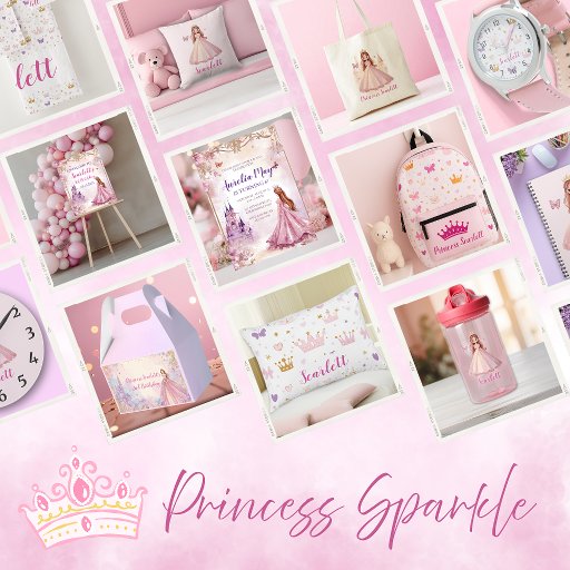 Un poster de bienvenida color rosa para los chicas con un diseño de princesa adorable. Perfecto para saludar a los huéspedes y añadir un toque mágico a una celebración temática de las princesas.