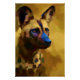 Una pintura digital que combina el hiperrealismo con la abstracción audaz y contemporánea. Este retrato cautivador de un Perro Salvaje Africano muestra un choque armonioso de tonos vivos de azules profundos, ocres dorados y verdes eléctricos que alientan la vida en cada cadena y sombra de piel. Las pinceladas texturadas, casi cubistas, añaden profundidad y movimiento, transformando un simple perfil canino en una declaración de belleza cruda e intensidad emocional.