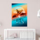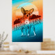 Sorprendente diseño poster de estilo retro de un Chihuahua con un fondo montañoso y un gran gráfico solar todo en una llamativa paleta de colores de naranja quemado a través del turquesa y el oro. Una gran fuente decorativa nombra a la raza del perro. Busque ID754 para ver otras opciones de color y razas de perros adicionales en este estilo.