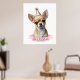 Bienvenido a nuestro cartel de diseño caprichoso rosa con nombre de Chihuahua lindo: la adición perfecta para cualquier hogar de amantes de los Chihuahuas. Este cartel presenta una adorable ilustración de un Chihuahua con un sombrero de fiesta y una pancarta de acuarela rosa para un nombre personalizable, lo que lo convierte en el regalo personalizado perfecto para cualquier amante de los perros. Es perfecto para agregar un toque de dulzura a cualquier habitación de su hogar, ya sea el dormitorio, la sala de estar o incluso la oficina.