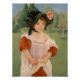 Childhood In A Garden (1901) is a romantic portrait of a little girl in a summer garden, wearing a black hat with a pink flower on it. Oil on canvas by American impressionist artist Mary Cassatt , famous for her portraits of mothers and children.