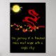 Chinese Proverb poster, "The journey of a thousand miles must begin with a single step". Striking dragon in moonlight image. This would look great in any room.