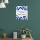 Póster Chinoiserie Azul Blanco Bienvenida Pájaro Follaje