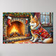 Póster Chinook Sitting by Fireplace with Christmas Lights