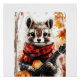 Un chipmunk con una bufanda roja toca una guitarra entre las hojas de otoño. Las acogedoras vibraciones del bosque le dan un encanto animal divertido.