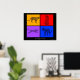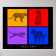 Compra este poster de guepardos en colores naranja, rojo, púrpura y azul.