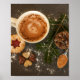 El diseño incluye una fotografía de una bebida Navidad y una decoración.