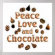 Los amantes del chocolate saben que para tener paz y amor en tu vida, NECESITAS chocolate. Disfrute de este delicioso diseño con los dulces de chocolate y las palabras Paz Amor y Chocolate.
