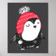 Póster Christmas Cute Baby Penguin Wearing Winter Hat W_e
