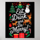 Póster Christmas Eat Drink Be Merry Xmas Santa Reindeer S