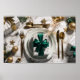 Póster Christmas Gift Box with Green Ribbon on Festive Ta