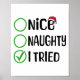 Póster Christmas Nice Naughty I Tried Christmas List Xmas