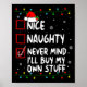 Póster Christmas Nice Naughty Never Mind I'll Buy My Own