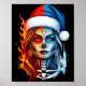 Póster Christmas Sugar Skull Art Woman Santa Hat Fantasy