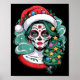 Póster Christmas Sugar Skull Art Woman Santa Hat Festive