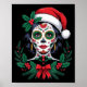 Póster Christmas Sugar Skull Art Woman Santa Hat Festive