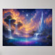 Un paisaje irreal radiante cobra vida con cascadas brillantes, cielos brillantes y nubes luminosas en contraste brillante. Las arañas cristalinas y las islas flotantes brillan en colores brillantes, mientras que los brillantes mágicos y la luz celeste crean una escena etérea y de ensueño. Esta obra de arte combina la belleza paradisíaca con la maravilla de la fantasía, perfecta para los amantes del arte vibrante, místico y de otra índole.