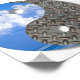 Cielo azul prístino con nubes blancas puras contra metalizado industriales. La vida está llena de opuestos y este diseño los mantiene en perspectiva.