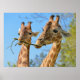 Póster Cierre de dos jirafas comiendo una ramita