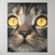 El diseño presenta un retrato fotográfico de un gato con ojos distintivos.
