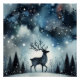 Un ciervo elegante se encuentra bajo un cielo invernal brillante, enmarcado por pinos cubiertos de nieve y delicados árboles desnudos. Los profundos azules de medianoche se desvanecen en blancos helados, mientras que las estrellas y los copos de nieve se dispersan como joyas por los cielos. Esta escena soñadora del bosque captura la silenciosa maravilla de una noche nevada, combinando el calor acogedor con la magia celestial. Perfecta para evocar la quietud del invierno y la belleza del ritmo de la naturaleza. Arte generado por IA.