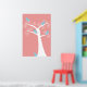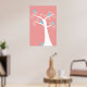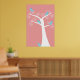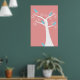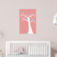 Cinco adorables pájaros azules abstractos cuelgan en un árbol blanco sobre un fondo rosado en una huella