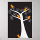 Póster Cinco pájaros Naranjas en un Poster de árbol