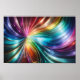 En el centro convergen cintas giratorias de colores vibrantes que crean un patrón dinámico y llamativo. Los colores van desde rojos y violetas hasta amarillos y verdes brillantes, iluminando toda la escena con un resplandor radiante.