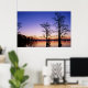 Póster Cipreses calvos cubiertos de silueta al atardecer,