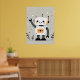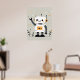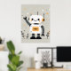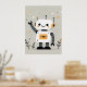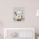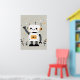 En medio de un fondo caprichoso, un simpático robot hace olas alegres, con su cuerpo blanco y su cabeza adornados con orejas circulares naranjas y ojos negros expresivos. El estilo lúdico, las estrellas dispersas y las pequeñas plantas crean un ambiente agradable que atrae tanto a los niños como a los adultos, añadiendo un toque futurista de encanto y calidez a cualquier guardería.