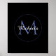 Monograma moderno de círculo azul minimalista con nombre inicial azul y blanco sobre negro. Nombre personalizado personalizable con un serif inicial en un color negro.