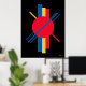 Póster Círculo Rojo con Bares Azules y Amarillos