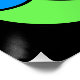 Patrón geométrico abstracto y colorido, intersectando círculos con colores arcoiris sobre fondo negro