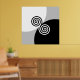 Arte abstracto con formas geométricas de círculo espiral sobre gris y blanco negro. Las espirales simbolizan la sagrada energía cósmica presente en todo. La doble espiral representa equilibrio y creatividad. ¡Y está en el centro de la vida como ADN compuesto de doble hélice!