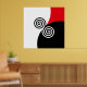 Póster Círculos espirales abstractos sobre rojo y blanco