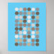 © Christina Katson- Una moderna poster impresa con mi original arte y diseño vectorial gráfico abstracto. Este poster abstracto contemporáneo tiene un diseño geométrico moderno con puntos/círculos de diferentes tonalidades de gris y chocolate, con un fondo azul turquesa claro. Bonita paleta de colores neutros relajantes, con tonos azules, marrones y grises. Esta impresión moderna sería perfecta para una oficina, un negocio o un hogar moderno.