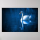 Una hermosa escena natural de un cisne blanco nadando en un tranquilo lago azul. Las sombras de color azul oscuro contrastan con la iluminación azul suave de este tranquilo cisne.