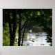 Un cisne fotografiado a través de los árboles de la orilla del río Taff, en Bute Park Cardiff, Gales. Reino Unido en el verano de 2007.