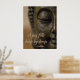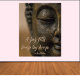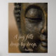 Bonita foto de Buda busto con su famosa cita: Un JUG FILLS DROP BY DROP. Colores marrón y beige con letras de guión.