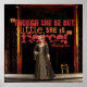 Esta colorida representación de la famosa cita de Shakespeare: "¡Aunque sea pequeña, es feroz!" de A MidSummer Night's Dream con una mujer renacentista parada en un salón isabelino es un trabajo de collage de fotos digitales del actor australiano Sally McLean