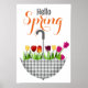 Bienvenidos a la temporada de primavera en su casa con este diseño de primavera. Este diseño es con texto HELLO SPRING set usando una tipografía popular con coloridas flores de tulipán en un jardín de paraguas. ¡Disfrútalo!