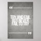 Hermoso y moderno diseño de la cita inspiradora y motivacional "Intenta fracasar pero nunca dejes de probar". Verdaderas palabras de inspiración, sabiduría y motivación para cualquier ocasión. Genial como auto-recordatorio o como regalo a un amigo. ¿Quieres citas más motivacionales y inspiradoras? Visita mi tienda. Encontrarás aquí: - citas inspiradoras - citas motivacionales - citas famosas - citas positivas - citas de vida - citas de liderazgo - citas divertidas y de felicidad Si tienes una solicitud especial para una imagen diferente con tus citas inspiradoras o motivacionales favoritas con un producto que Zazzle ofrece y que no he creado, siéntete libre de contactarme a través de la opción de contacto.