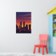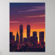 Vista panorámica de la silueta de Cityscape con fondo de Sunset, silueta negra de edificio con luz de lámpara y fondo de puesta de sol con color degradado con color púrpura, rojo, naranja y amarillo.