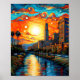 Póster Ciudad al atardecer; estilo Vincent Van Gogh