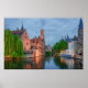 Póster Ciudad antigua y torre Belfry de noche en Brujas