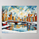 Póster Ciudad cubista de nieve con puentes de Canal