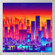 Póster Ciudad de Synthwave/Cyberpunk al atardecer