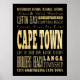 Hermoso trabajo de tipografía listando atracciones y lugares famosos de Ciudad del Cabo, Sudáfrica. ¡Excelente recuerdo y recuerdo!