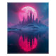 Póster Ciudad retro-futurista alienígena con luna rosa ne