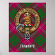 Insignia de escudo del Clan Crawford rodeada por una correa y hebilla sobre el fondo del tartán. Texto personalizado.